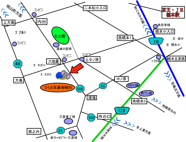 JR線・京王線橋本駅南口を出て、バスで約10分。